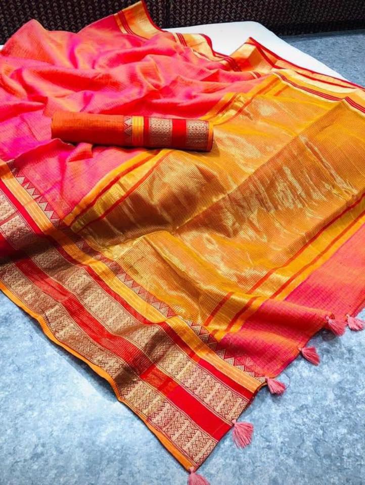 Super net soft Kota cotton sarees with jeqard border with tassles*